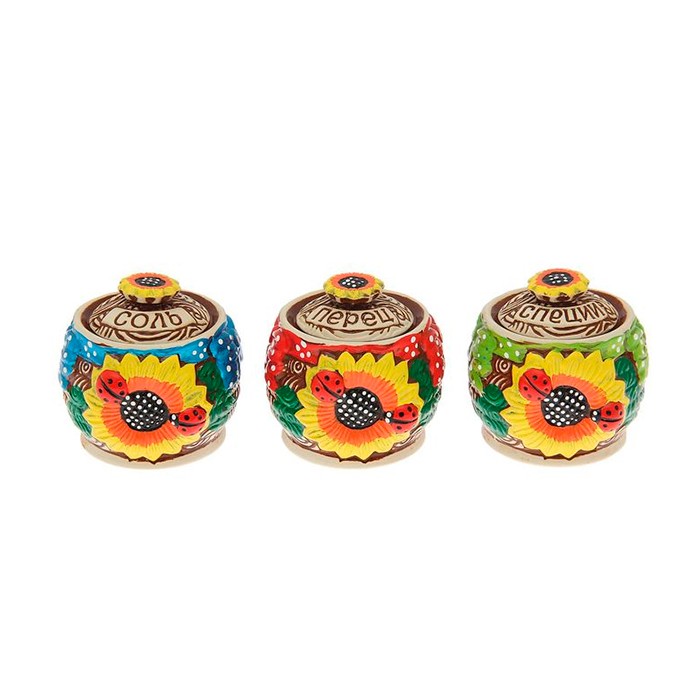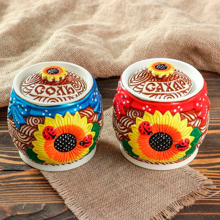 Set 2 containers for spices, ORIENS, Ceramics, Sunflower, Brown