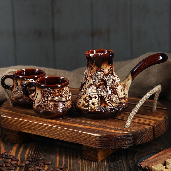 Coffee set cezve, ORIENS, Castle, 200ml, 100ml, Ceramics, Beige/Brown, 3 pieces