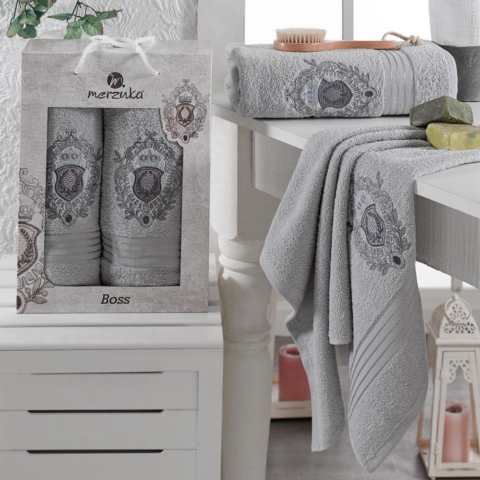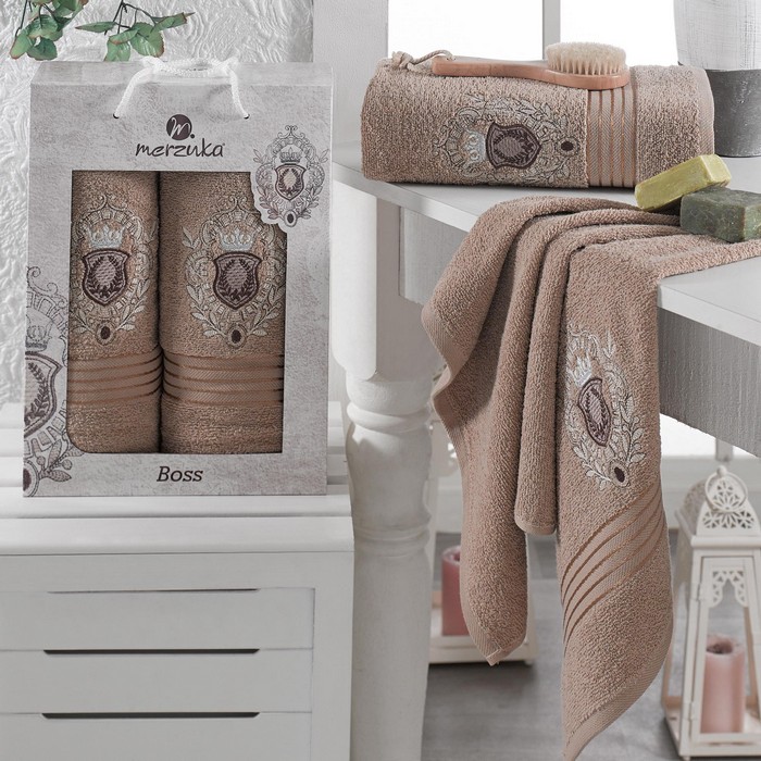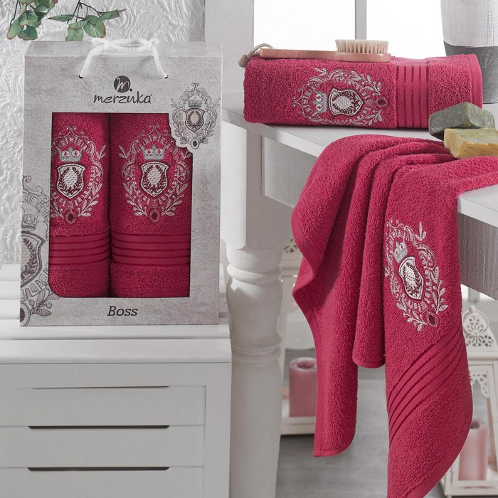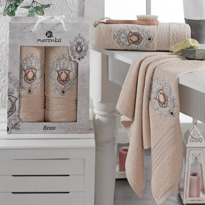 Towel set, MERZUKA, 2 pieces, 50x80 cm, 70x130 cm, Boss, Cotton, Various Colors