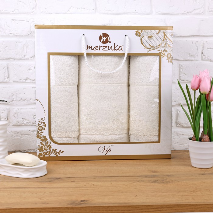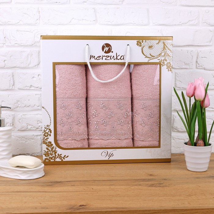 Towel set, MERZUKA, 3 pieces, 50x90 cm, 70x140 cm, Vip Elit Laced, Various Colors, Cotton