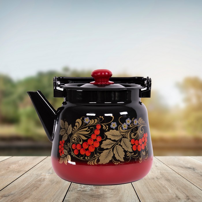 Teapot, STALI-EMALI, Enamelled Steel, 3.5L, Black/Red, With print