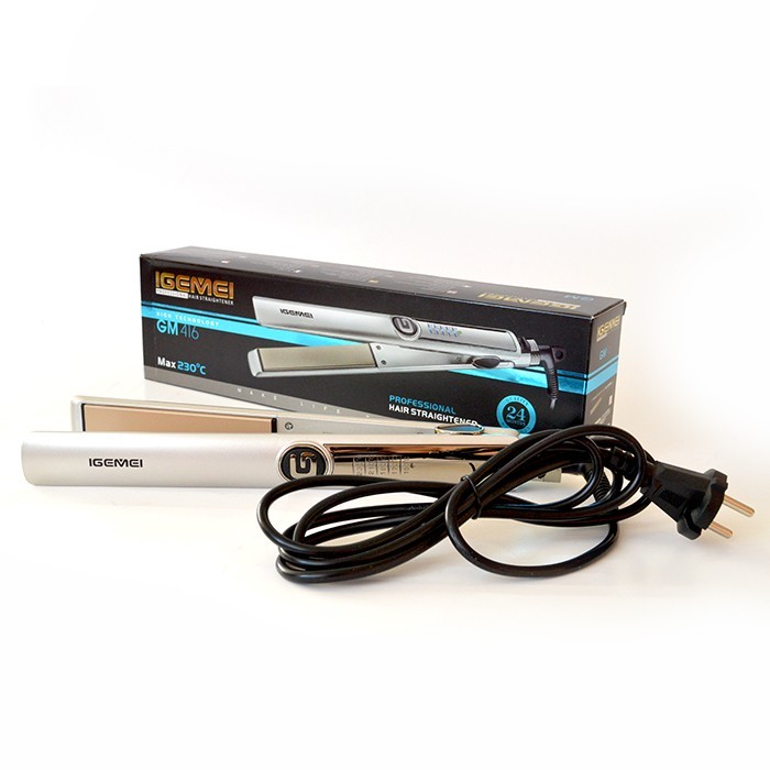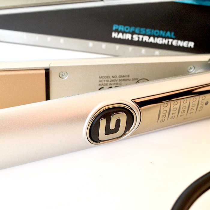 Hair straightener, GEMEI, Plastic, Gold, 230 C, 220/240 V, 35 W