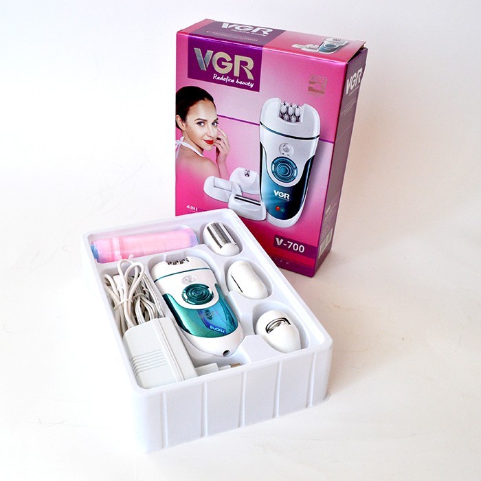 Epilation set, VGR, 7 pieces, Plastic/Metal, White/Blue, 50 minutes, 3V, 3W, USB Power