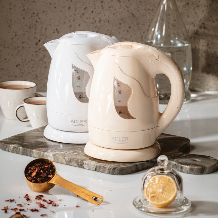 Electric kettle, ADLER, 1L, 850 W, 220 V, 66 cm, Plastic, Beige