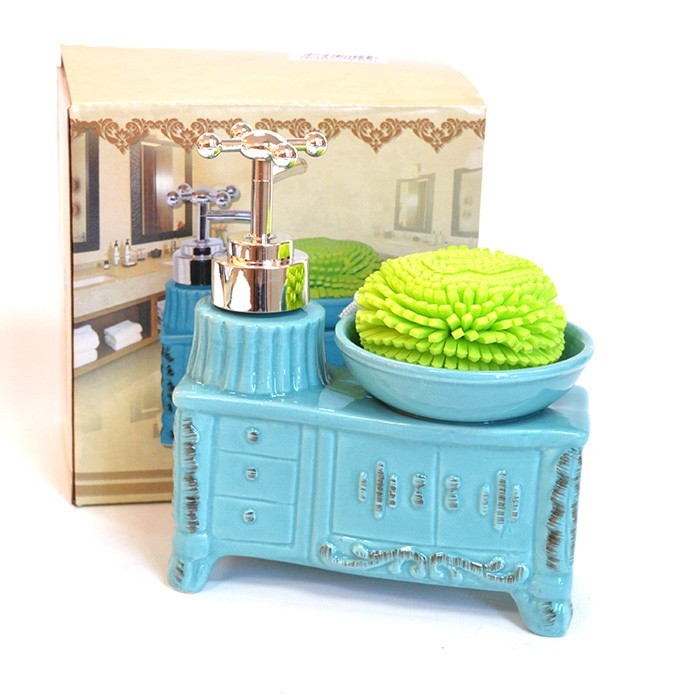 Liquid soap dispenser with sponge, GS, Ceramics, Turquoise