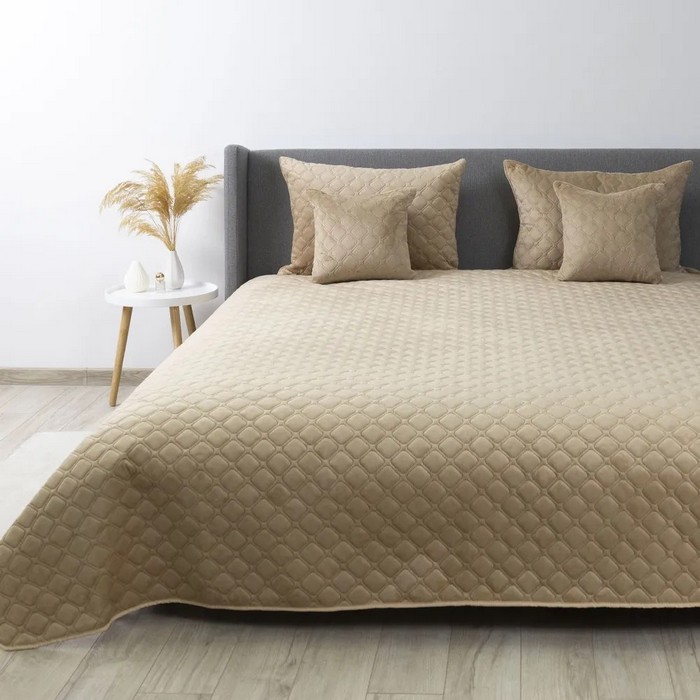 The bedspread is double-sided, which distinguishes it from other products. By purchasing one bedspread, you get two different textures on both sides. One side is a velvet-like velor fabric, very soft and pleasant to the body. The second side is smooth microfiber. The pattern of the bedspread is made using the unique technology of ultrasonic soldering Ultrasonic, due to which the product is durable and of high quality, and the pattern of the bedspread is perfectly even. Bedspread Velor is very pleasant to the touch, has a varied range of colors and will decorate any interior. Outer fabric: 100