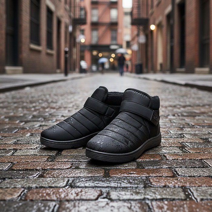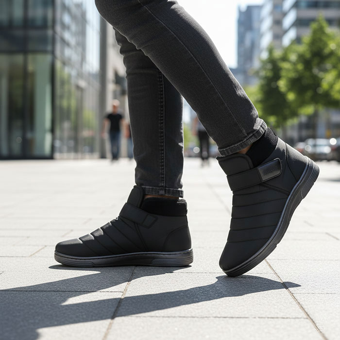 Men's autumn-winter boots with warm synthetic fur lining provide thermal comfort. The shoes are lightweight and warm, ideal for everyday use in the city or for outdoor activities in cold weather.
