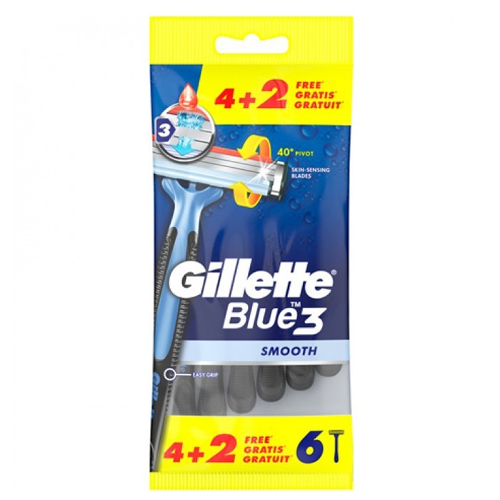Set of 6 shaving razors, GILLETTE, Blue, 3 blades, Plastic