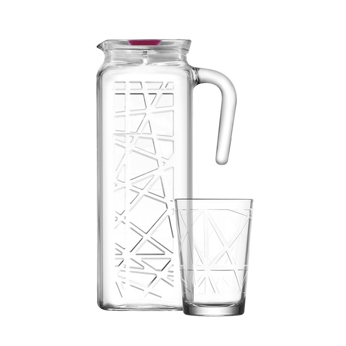 Jug set with 6 glasses, LAV, Glass, Embossed, 7 pieces, Line
