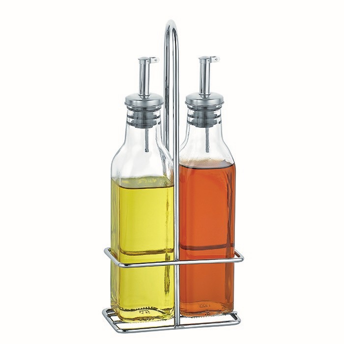 Set 2 oil bottles, RENGA, 2 pcs, Glass, 250ml, Voca, With lid, Metal, Transparent
