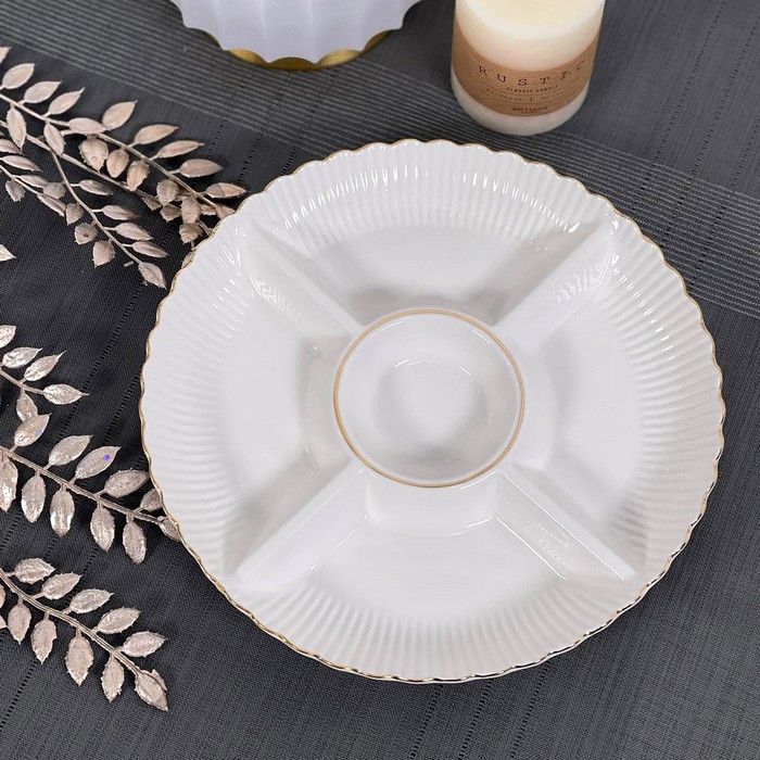 Divided platter, GS, Porcelain, 26 cm, Embossed, White/Gold
