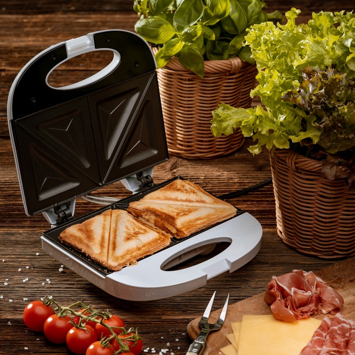 Sandwich maker, ADLER, 750 W, 230 V, Stainless Steel, Teflon, 2 slices