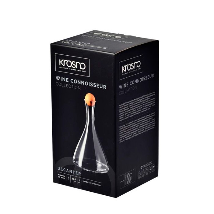 The glass aerator Krosno, with a cork stopper, with a capacity of one liter, is the perfect choice for storing and serving your favorite drinks in an elegant and functional way. Whether you're serving drinks at family meals, parties or gatherings with friends, this decanter adds an extra touch of elegance and style.