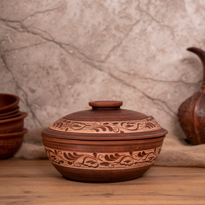 Before first use, grease the sides of the pot and fill with warm water for 2 hours. The pot will be used in the oven, if used on a stove, it must be protected with a ceramic / metal sheet. ... Avoid chilling food sharply after removing it from the oven. No need to add fat for cooking. Since the pots are handmade, the dimensions may vary by + -2 cm. Do not wash in the dishwasher.