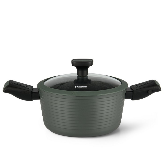 The FISSMAN pan contains ceramic particles that improve non-stick properties and provide reliable protection against damage. The design is thought out down to the smallest detail, an original color on the outside and inside. The glass lid fits perfectly, does not slip or scratch the coating, allows you to observe the availability of food without removing the lid from the pan, thus eliminating splashes on the skin and clothes.