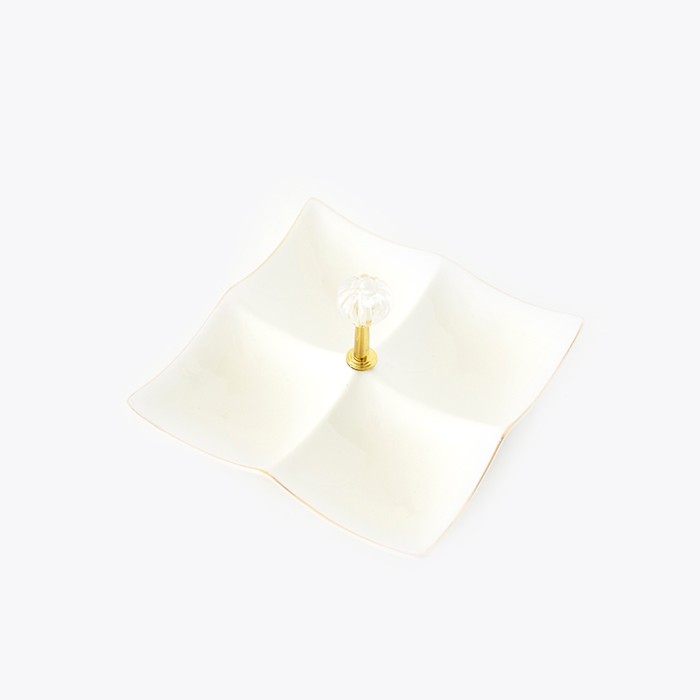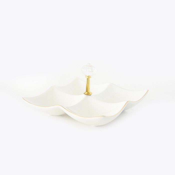 Set of 2 serving dishes, GS, Ceramics, 16cm, 4 compartiments, Square, White/Gold