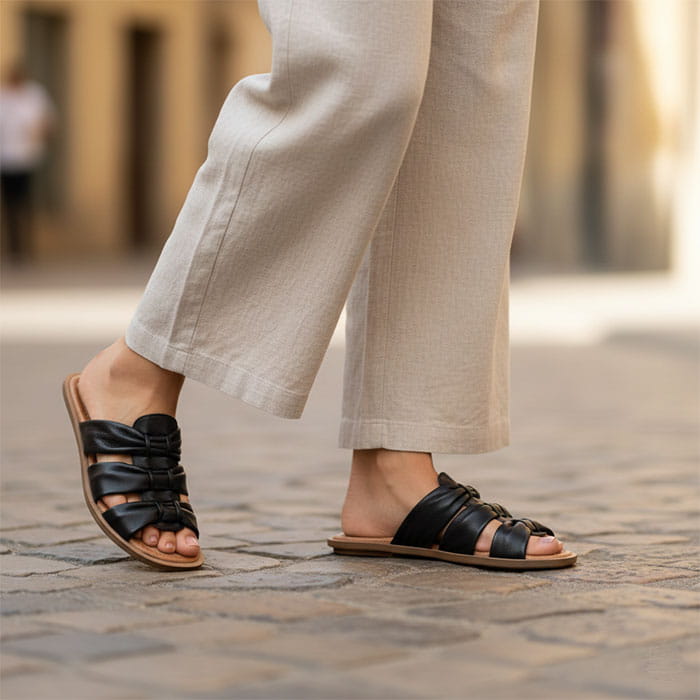 Choose comfortable footwear models that suit your casual summer outfits. These women's slippers offer a high level of comfort, support at the spine, but also stability throughout the wear. Because they have a simple design, these slippers fit perfectly in everyday outfits with light summer pants or skirts. Wear slippers with a light and flexible sole and combine comfort with the trends of this season.