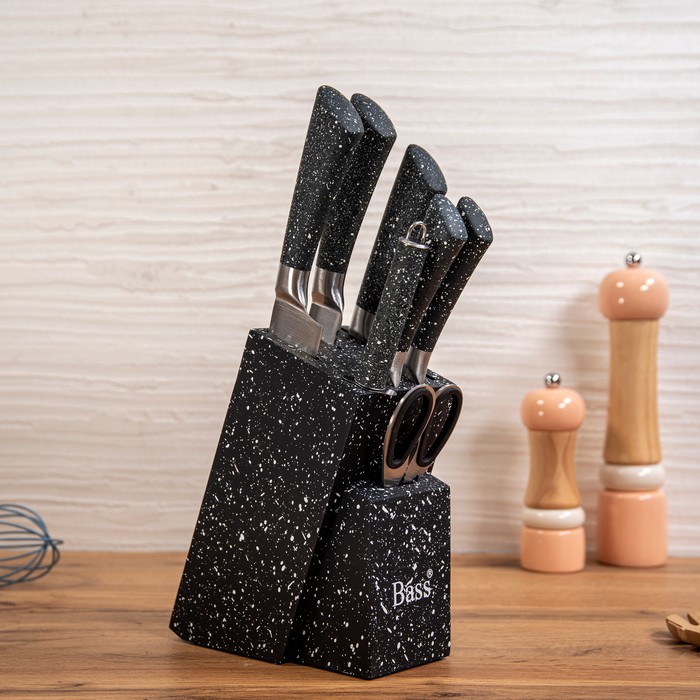 Set of knives with stand, BASS, 7 pieces, Stainless Steel, Plastic Handle