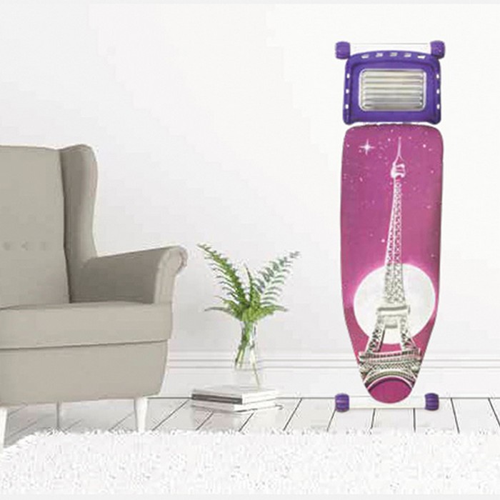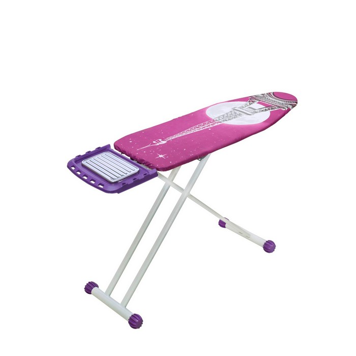 The ironing board has a stable and robust frame with non-slip covers. The table is intended for intensive use, has a perforated metal mesh top especially for steaming and an iron support.