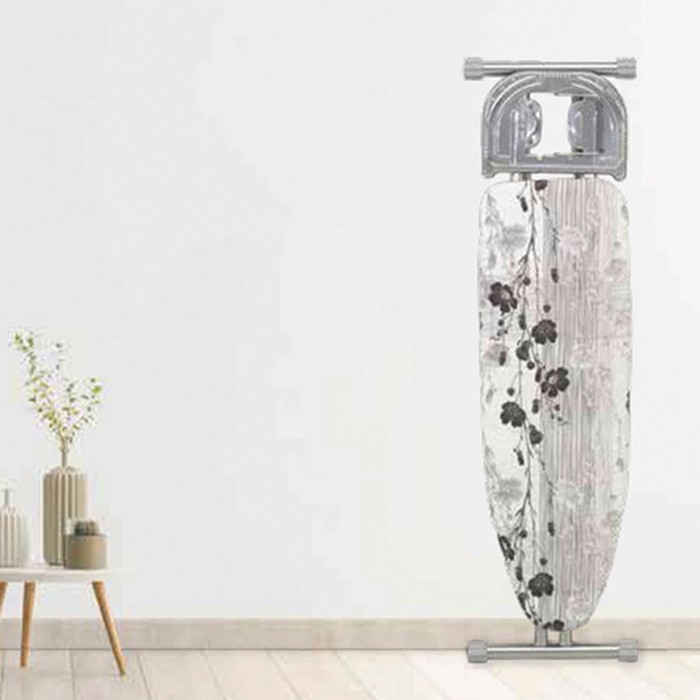 The ironing board has a stable and robust frame with non-slip covers. The table is intended for intensive use, has a perforated metal mesh top especially for steaming and an iron support.