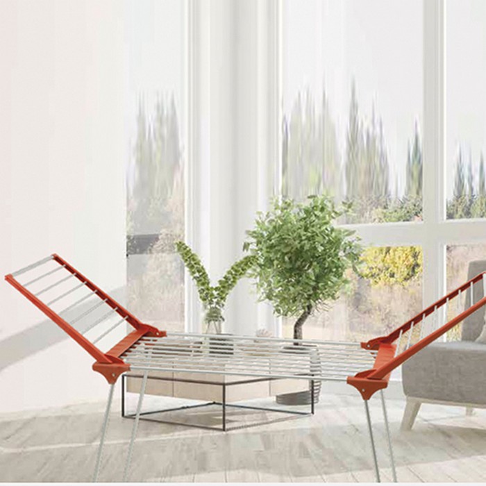 The product offers additional space in both height and width, is stable and durable. The dryer is designed for long clothes without touching the floor. With two foldable sides that open to the maximum height. It can be used both indoors and outdoors, it is safe even in light winds. Recommendations: * Spread the laundry evenly over the entire surface. * Store in damp rooms. * The dryer can be cleaned with a soft cloth and warm soapy water, avoiding the use of detergents and abrasive sponges.