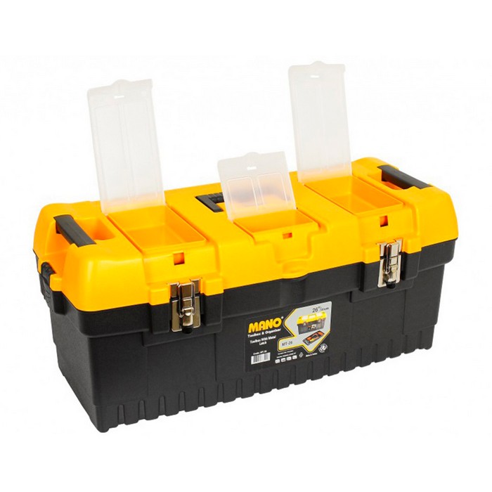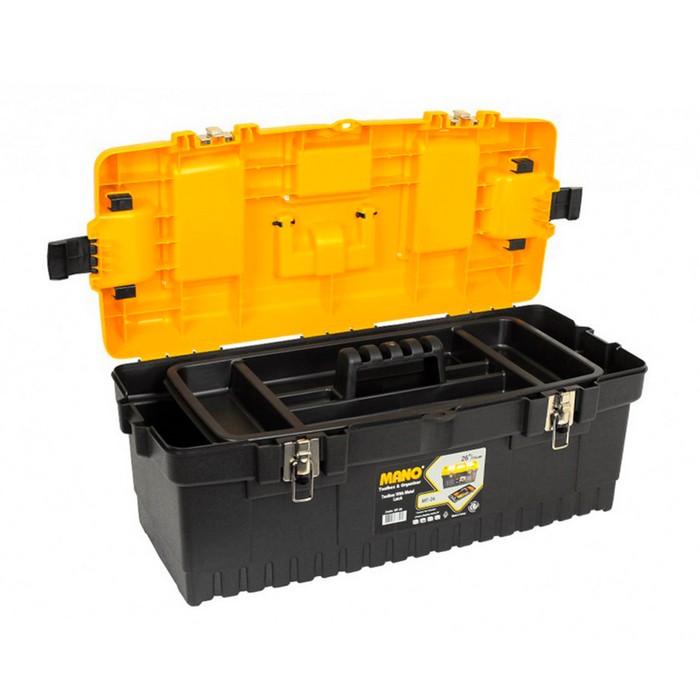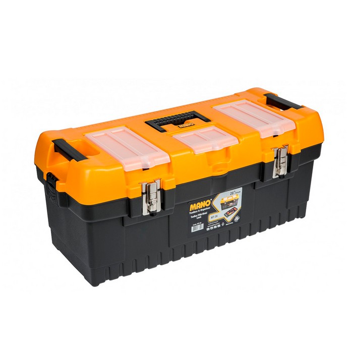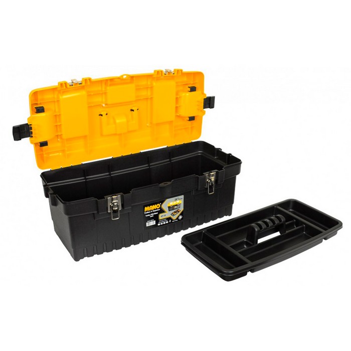 The multifunctional toolbox has a role in any home, garage, workshop or office. You can store in this small tools and accessories (nails, screws, etc.), which will help you maintain order and make the necessary things easy. The compartments at the top, a removable drawer with handle and a large box at the bottom, facilitate organization. It is equipped with a convenient carrying handle and two fasteners and is perfect for both beginners and professionals.