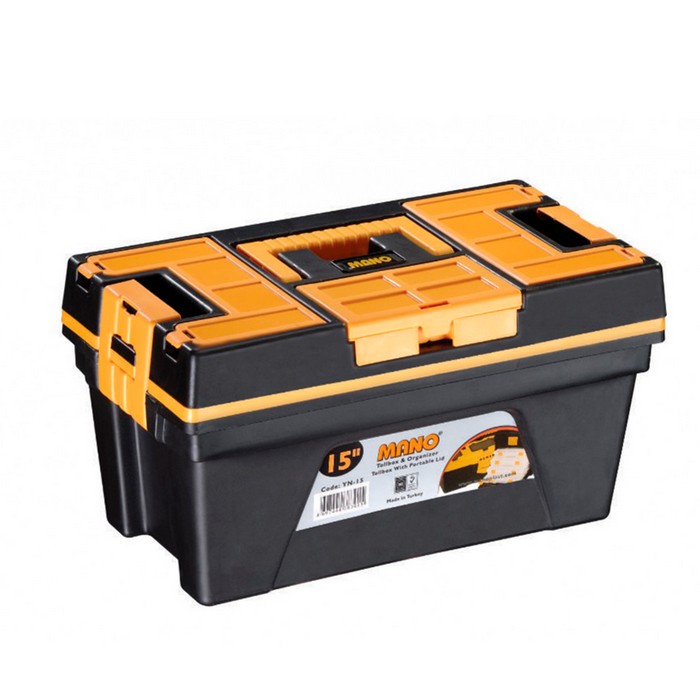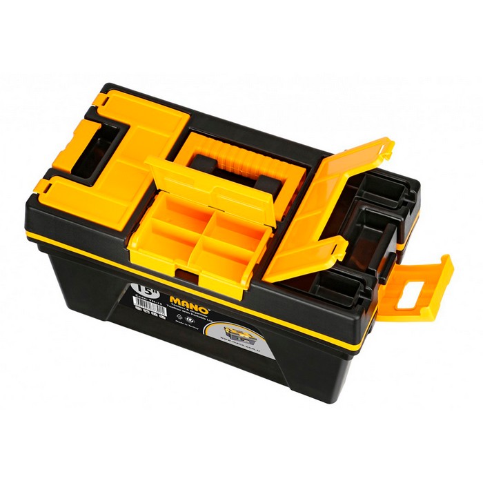 The multifunctional toolbox has a role in any home, garage, workshop or office. You can store in this small tools and accessories (nails, screws, etc.), which will help you maintain order and make the necessary things easy. The compartments at the top, a removable drawer with handle and a large box at the bottom, facilitate organization. It is equipped with a convenient carrying handle and two fasteners and is perfect for both beginners and professionals.
