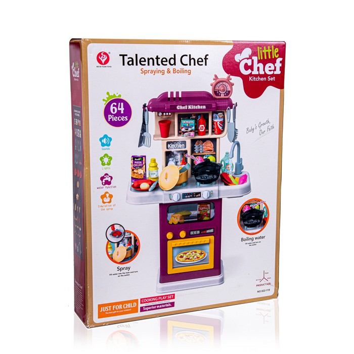 Toy kitchen with accessories, GS, Interactive, 64 pieces, 46cm, 60cm, 9cm, Plastic, 3+, Сardboard box