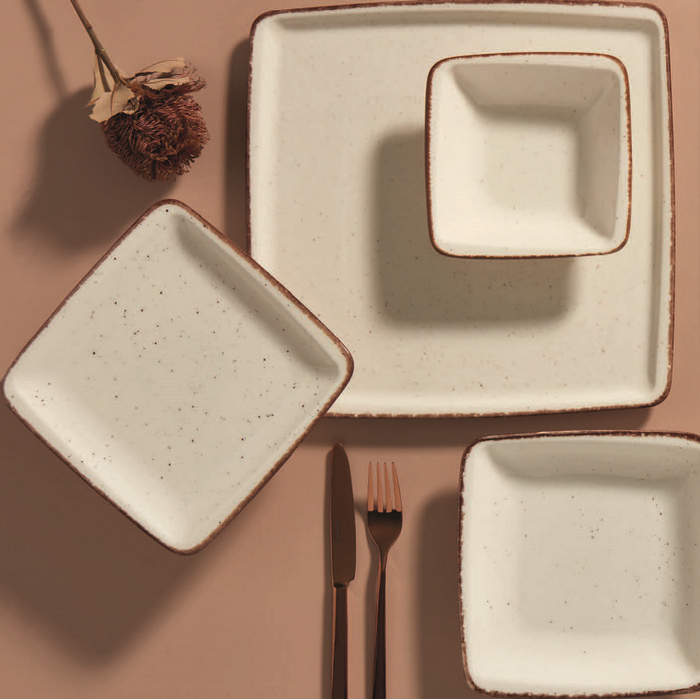 Platter, GURAL PORSELEN, Brown Side, Porcelain, 25cm, 25cm, Cream, Square