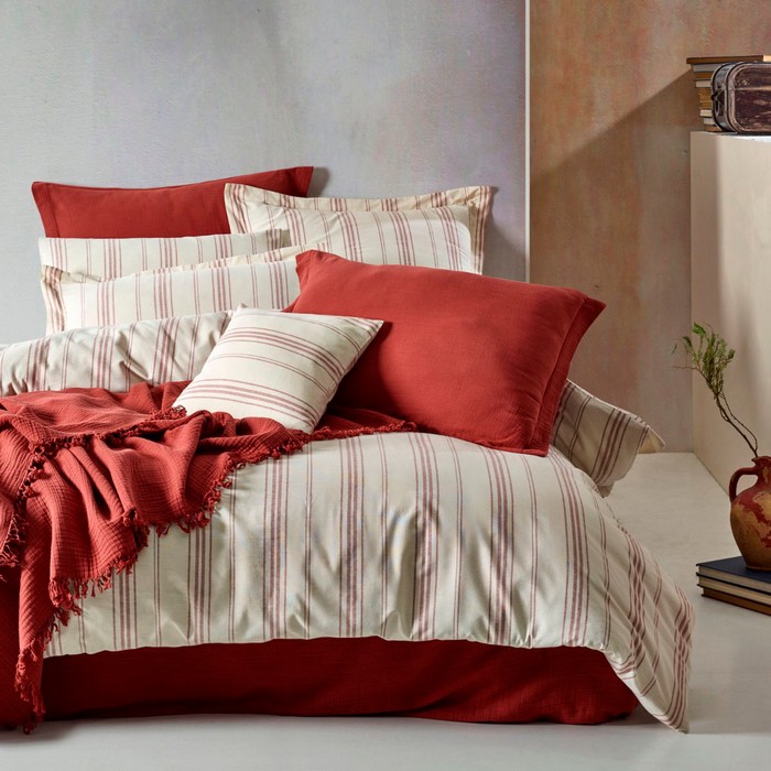 Bedding set and blanket, NAZENIN, Double Size, 240x260cm, 200x220cm, 50x70cm, Red, 4 pieces