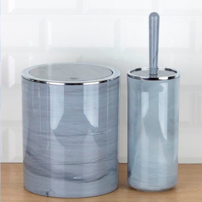 Set of 2 bathroom accessories, OKYANUS, Plastic, Light blue, Round