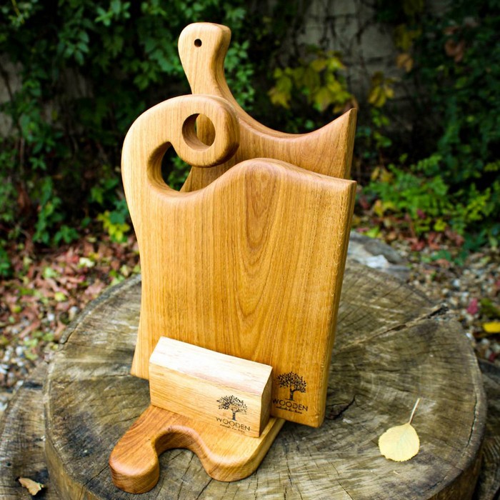 Set of 2 cutting boards on a stand, WOODEN, Wood, Combi, 37 cm, 32 cm