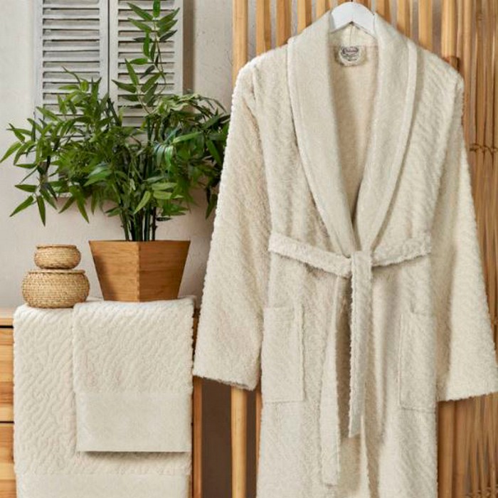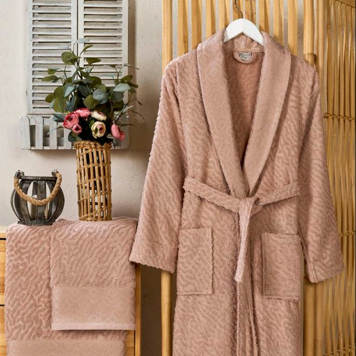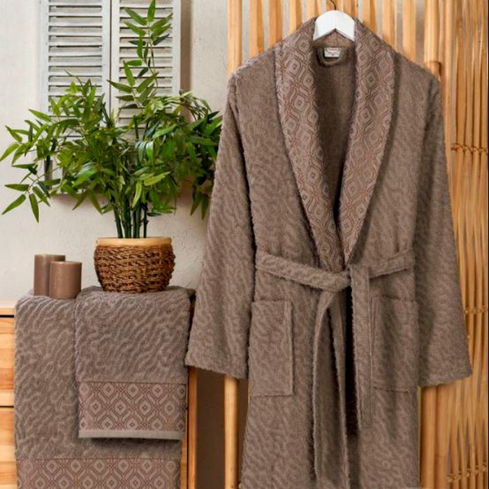 Bathrobe set with 2 towels, MERZUKA, 50x90 cm, 70x140 cm, Cotton, Various Colors