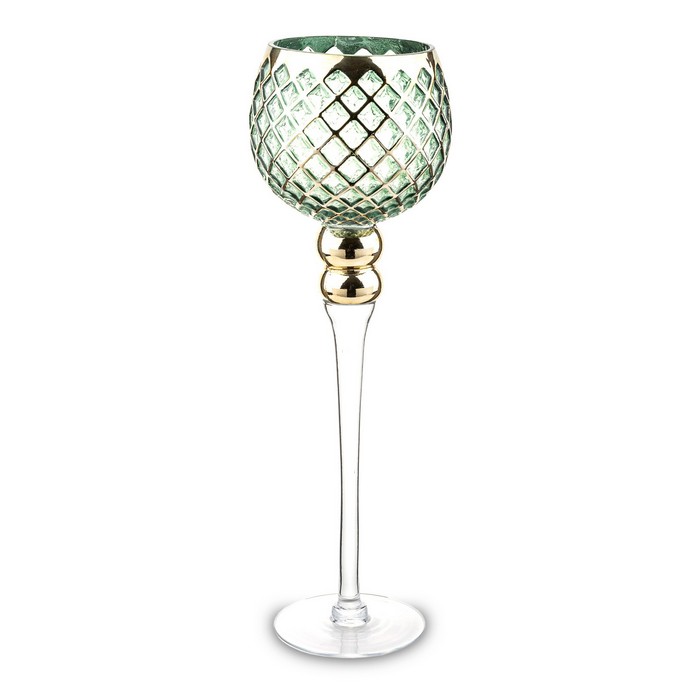 Candlestick, ART-POL, Green/White/Gold, 40cm, Glass