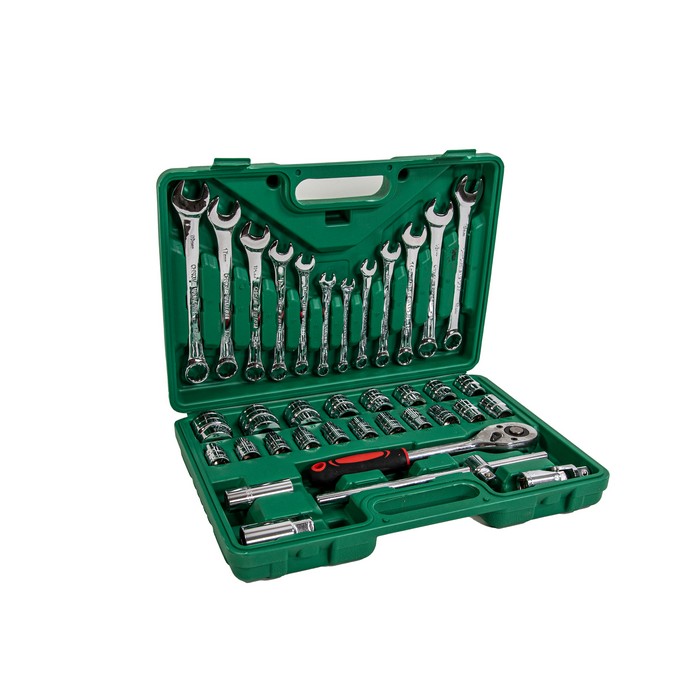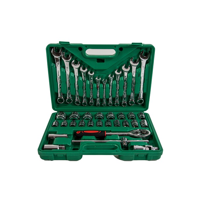 Set includes: [12] combination wrench specifications: 8-9-10-11-12-13-14-15-16-17-18-19; [19] 1/2 series sleeve specifications: 8mm ,9mm ,10mm ,11mm ,12mm ,13mm ,14mm ,15mm ,16mm ,17mm ,18mm ,19mm ,20mm ,21mm ,22mm ,24mm ,27mm ,30mm ,32mm; [1] 1/2 series: ratchet quick wrench; [1] 1/2 series: sliding head; [1] 1/2 series: long slide; [1] 1/2 series: universal joint [2] 1/2 series: spark plug sleeve 16MM, 21MM