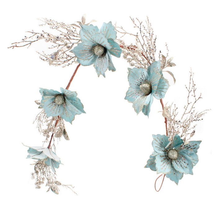 Decorative garland, GLOBAL CHRISTMAS, Turquoise, 140 cm