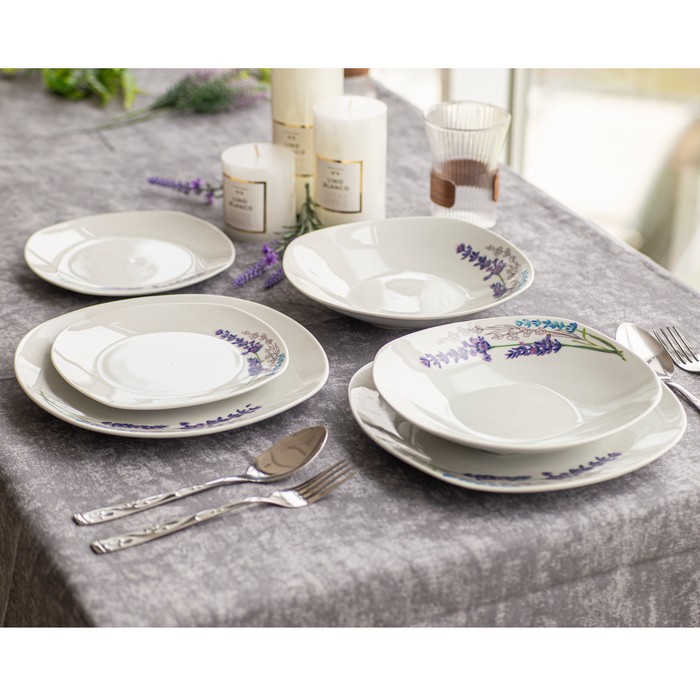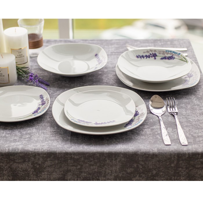 Square dinner set 18pcs, BRILLIANT, Ceramics, White, With print, 26.5 cm, 23cm, 20.5 cm