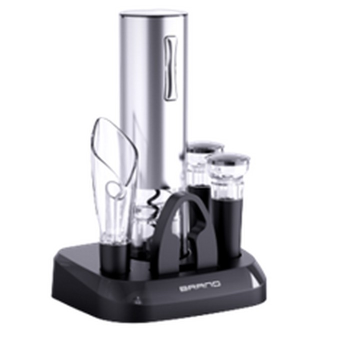 The electric corkscrew set with wine accessories is a device that makes opening a bottle of wine easier and faster. In addition to the actual electric corkscrew, the set also includes other useful accessories for wine. This set makes an excellent gift for wine lovers and is suitable for use at home or at social events such as parties or wine tastings.