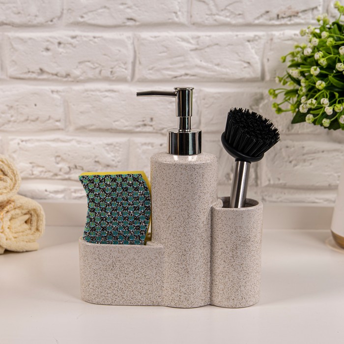Liquid soap dispenser with sponge, GS, Ceramics, White