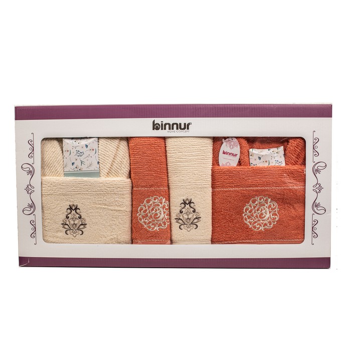 Set of 2 bathrobes, 2 towels and soap, MK HAVLU, Cotton, 70x140 cm, 50x90 cm, Standart, Various Colors