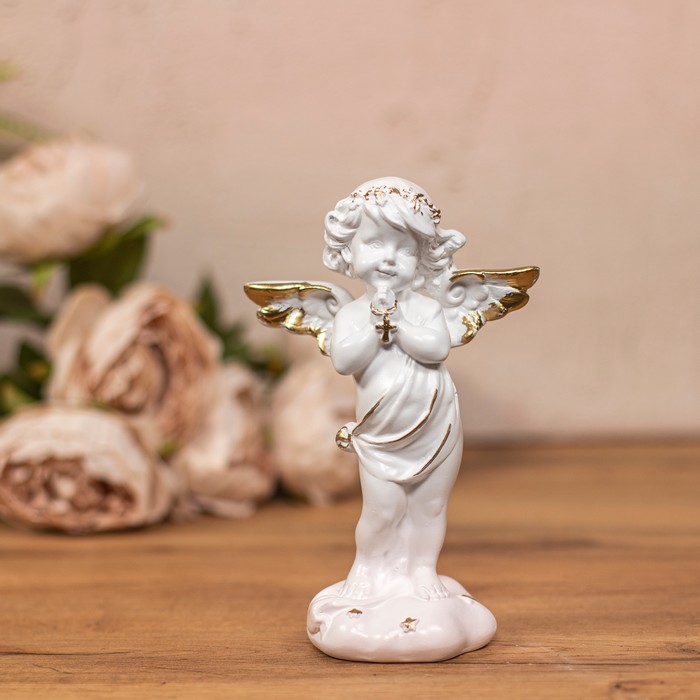Souvenir angel that prays, ORIENS, Gypsum, White/Golden, 22cm