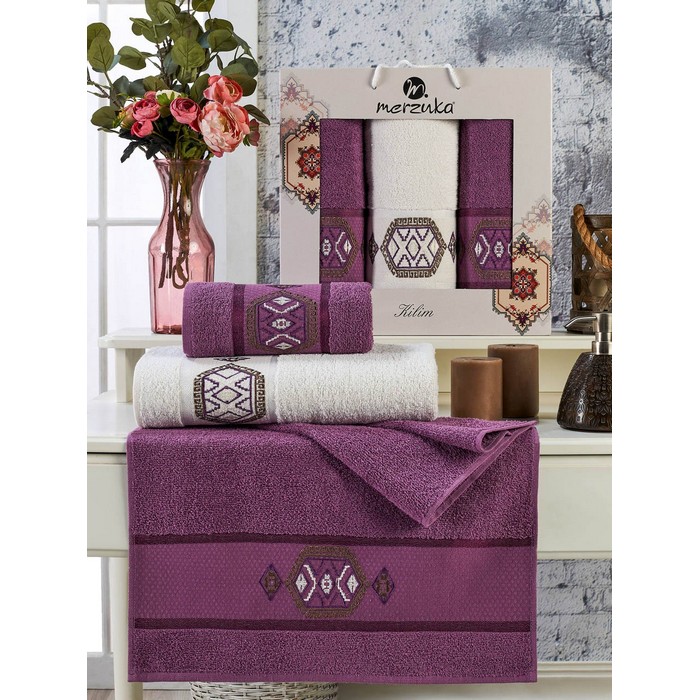 Set of 3 towels, MERZUKA, Kilim, 50x90 cm, 70x140 cm, Cotton, Various Colors