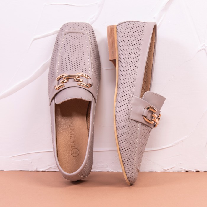 Woman's mocassins, LA PINTA, 36-40, Dark Beige, Natural leather, Rubber Sole