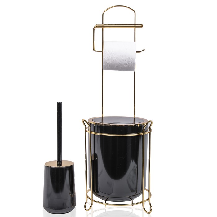 Set of 5 bathroom accessories, VIALEX, Metal, Golden/Black, Round