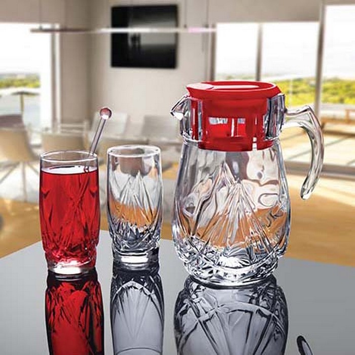 Set pitcher with 6 glasses, NORITAZEH, Glass, 1,5L, 330 ml, With lid
