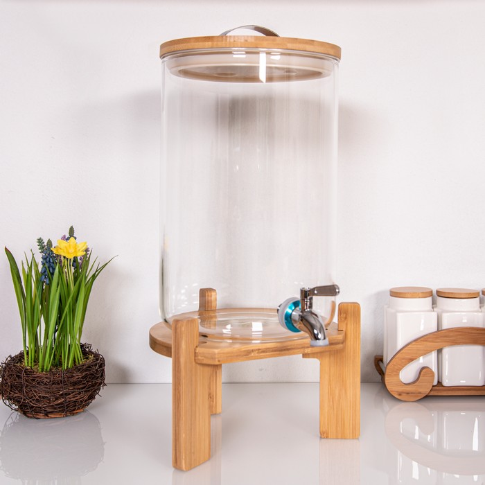 Lemonade jar, NO NAME, Glass, 8L, With lid, With stand