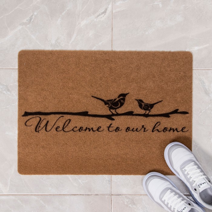 Entrance mat, TIN TOURS, 50x70 cm, Brown/ Black, With print