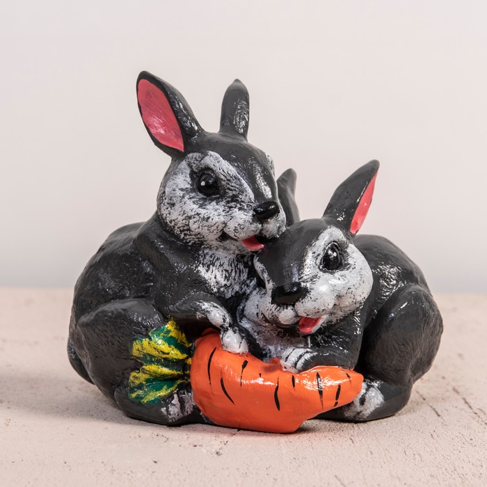 Garden figure rabbits with carrots, ORIENS, Gypsum, 20X25X13CM