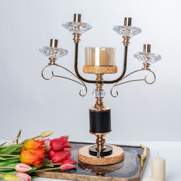 Candle holder, GS, 5 compartiments, 5cm, 45.5cm, Metal/Glass, Transparency/Golden