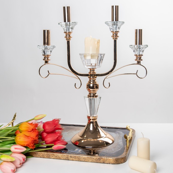 Candle holder, GS, 5 compartiments, 45.5cm, 31cm, Metal/Glass, Transparency/Golden